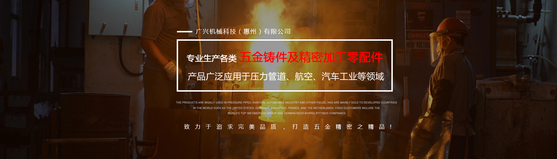 公司專業生產各類五金鑄件及精密加工零配件,可熔煉材質為全系列不銹鋼及碳鋼,主要生產材質有304316、316L17-4430、409等,年生產各種不銹鋼鑄件1000余噸。產品廣泛應用于壓力管道、航空、汽車工業等領域,主要銷往美國、德國、新加坡、法國、荷蘭等世界發達國家,固定客戶有世界500強艾默生集團及德國啤酒桶配件公司。